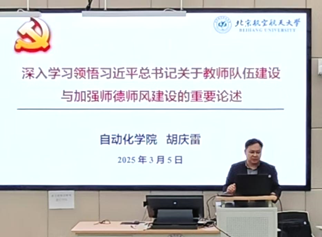 党课伊始,胡庆雷讲到全国两会在京开幕,2025年政府工作报告明确提出“加快建设高质量教育体系”,涵盖全面实施新时代立德树人工程、建设高素质专业化教师队伍、加强师德师风建设等举措,彰显了教师队伍建设与加强师德师风建设对于从教育大国向教育强国迈进的重要作用。