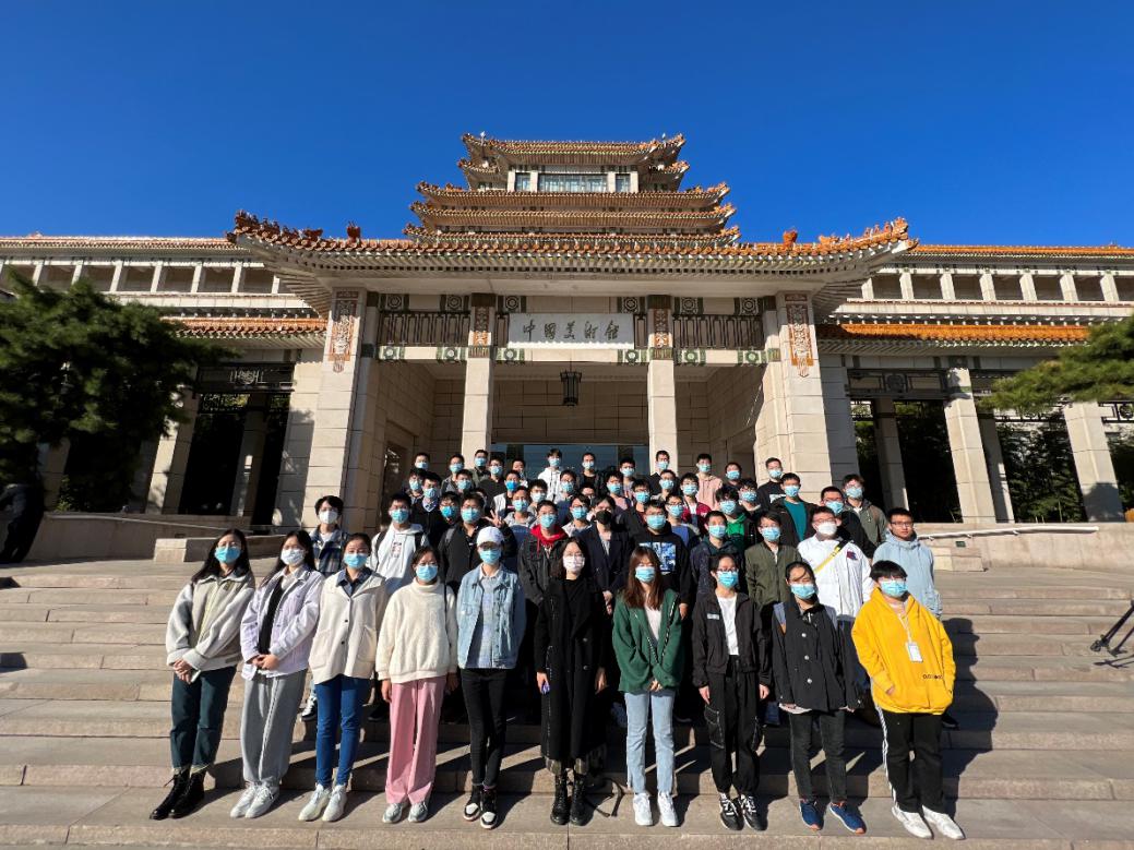 2021年10月22日下午,秋高气爽,由190321班和190322班组成的队伍集体乘车前往中国美术馆参观展览。抵达目的地后,同学们在工作人员的带领下井然有序通过安检,并在馆前阶梯上合影留念。