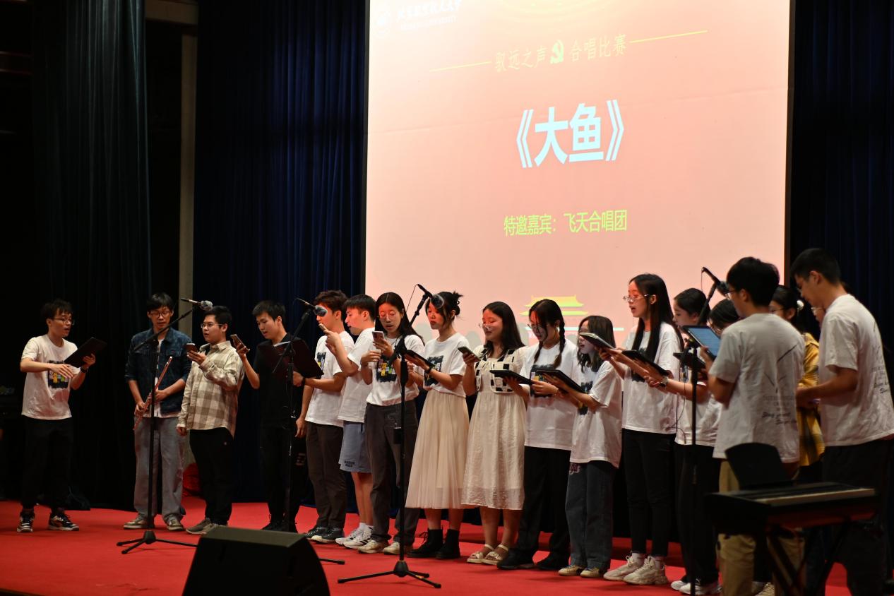 飞天合唱团作为此次比赛的特邀嘉宾,为大家带来了合唱《大鱼》和笛子独奏《红蜻蜓》。这不仅仅是音乐的展演,更是一场跨越时空的情感交流,所有观众为之沉醉与感动。在登台的合唱团成员中,多数都担任了本次比赛的指导老师,负责班级曲目的指导和编排。他们用自己的热爱和努力帮助每一个班级“从零起步”,让更多同学了解合唱,爱上合唱。