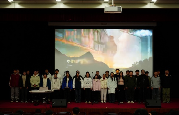 班主任代表单振宇老师、奚知宇老师担任评委与嘉宾,专职辅导员彭越、崔朗福到场观赛,全院本硕博新生班级全覆盖参与。舞台聚光灯下,参赛班级不仅展现了整齐嘹亮的歌喉,更用歌声传递对祖国的深情眷恋、对青春的热忱追求,经过精心排练的演唱最终精彩登台,既弘扬了爱国主旋律,又在协同合唱中加深了新生间的情感联结与集体归属感。