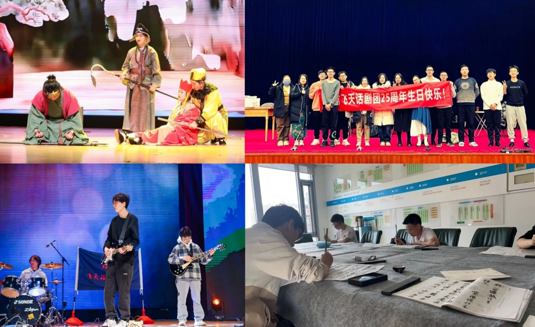 现如今,飞天艺术团已发展为涵盖合唱、话剧、摇滚、书法四个分团的百人规模团队,纵向贯通本科、硕士、博士各学段,横向辐射全校10余个学院,吸引航空、宇航、计算机、材料等不同专业背景的学子在此汇聚,形成“工科底色+艺术素养”的独特团队气质。自2004年起,艺术团持续推出“飞天剧”、专场音乐会、公开排练课等高品质美育博雅课程,其中“飞天剧”凭借对空天文化、红色故事的艺术演绎,成为北航校园文化的经典IP;“流光与归星”等专场音乐会,多次引发校园艺术热潮,累计吸引师生观众超2万人次。