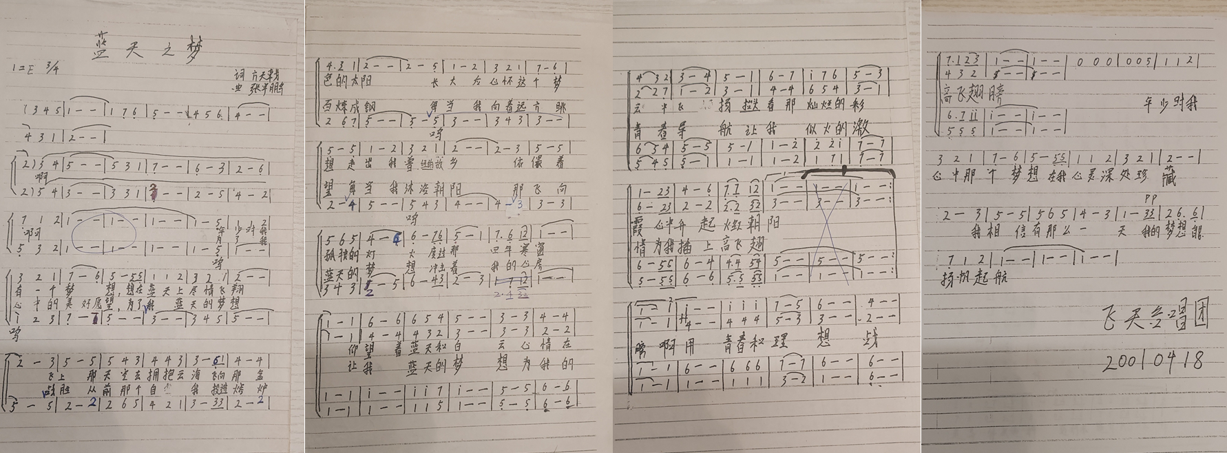 《蓝天之梦》手稿(局部)
