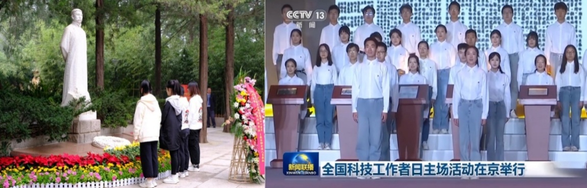 近年来,学院系统性组织校外美育参访活动30余场,覆盖中国美术馆、韩美林艺术馆、北服民族服饰博物馆、国家大剧院等重点文化场馆,参与学生超300人次。这些参访并非简单的“观光游览”,而是精心设计的“沉浸式思政教学”:在科技传播中心钱学森主题“星光阅享汇”读书会中,同学们通过参观“钱学森与两弹一星”展览、深度阅读《钱学森传》、聆听航天专家分享,领略钱学森等老一辈科学家“干惊天动地事,做隐姓埋名人”的奉献精神,进一步坚定“空天报国”的理想信念;在中国美术馆《开国大典》油画前,艺术专业老师现场讲解作品的创作背景与历史意义,引导学生回望新中国光辉历程,强化“强国一代”的使命担当;在“永恒丰碑——唱给先烈的赞歌”主题活动中,同学们在李大钊烈士陵园雕塑前敬献花篮、驻足敬礼,在缅怀革命先烈中感悟初心使命,坚定“听党话、跟党走”的理想信念。
